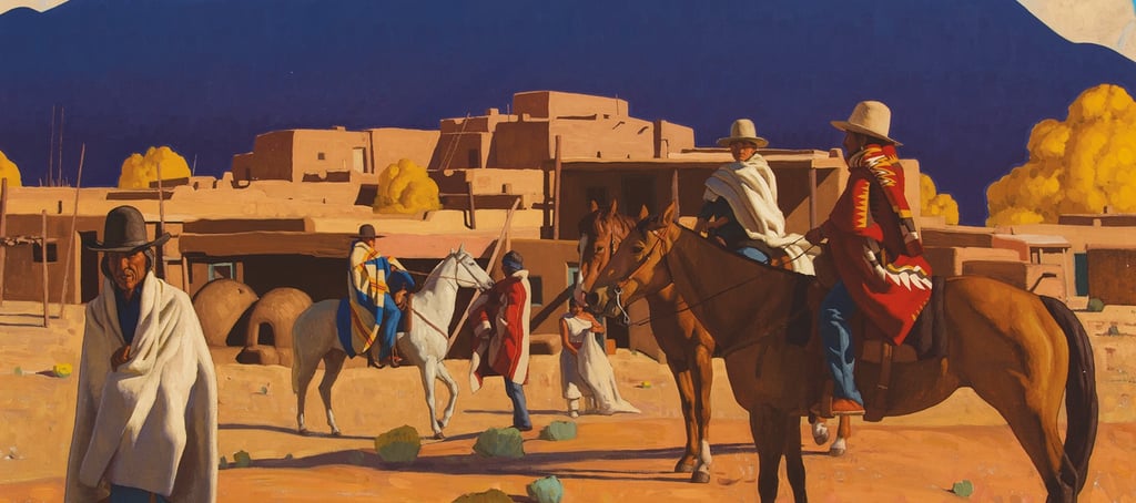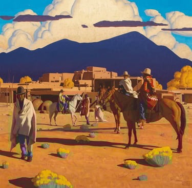 If I were to write a play about the pursuit of happiness, I think I’d pick some characters like those in the painting accompanying this post, by Logan Maxwell Hagege. The artist notes that he had long wanted to paint Taos in some way, but never quite knew until he made a trip there.[3] I live close to Section 14 in Palm Springs, a part of the city infamous for the abrupt demolition of the homes of Native Americans and other people of color who lived there in the 1950’s when, hungry for real estate opportunities, city officials colluded with developers to raze homes of the poor leaving scars still being felt by people including a friend of mine. One day kids came home from school, adults from work, to find "home" was gone. Bulldozed.